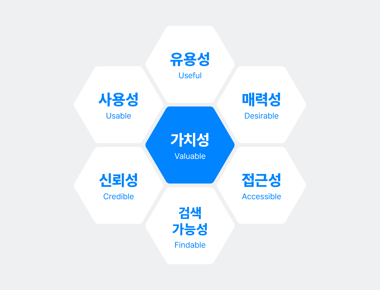 UX 필드의 선구자 중 한 명인 피터 모빌(Peter Morville)은 2004년 발간한 저서 '검색 2.0: 발견의 진화 ambient findability’에서 User Experience Honeycomb이라 불리우는 7가지 요소를 제시했습니다. 이 벌집 모형에서 제시한 UX의 7가지 요소를 알아봅시다.