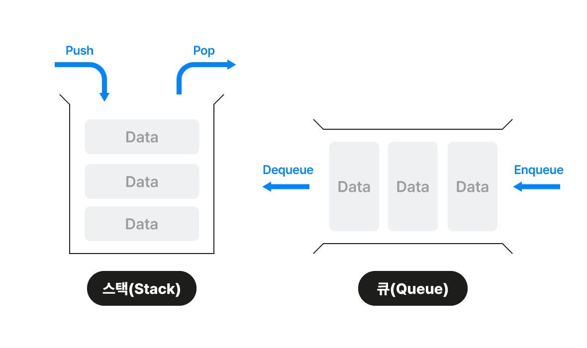- 데이터는 하나씩 넣고 뺄 수 있습니다.
