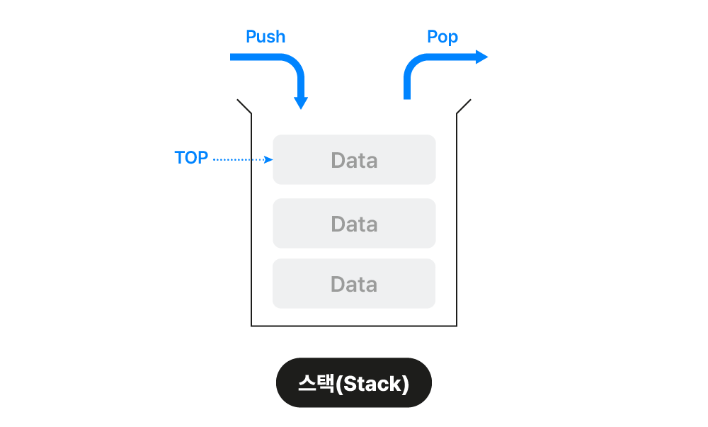 - 스택처럼 데이터는 하나씩 넣고 뺄 수 있습니다.